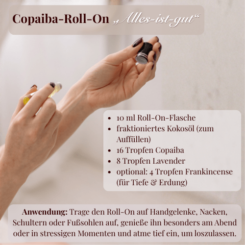 Beides lädt dich ein, Copaiba ganz praktisch in dein Leben zu integrieren – sanft, achtsam und genau so, wie es für dich passt.