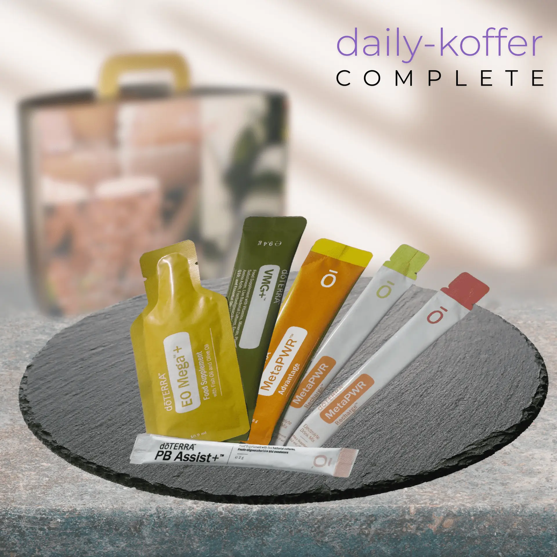Mit diesem Koffer erhalten Kunden einen umfassenden Eindruck der wichtigsten dōTERRA Nährstofflösungen – in einer liebevoll gepackten, alltagstauglichen Probierform.